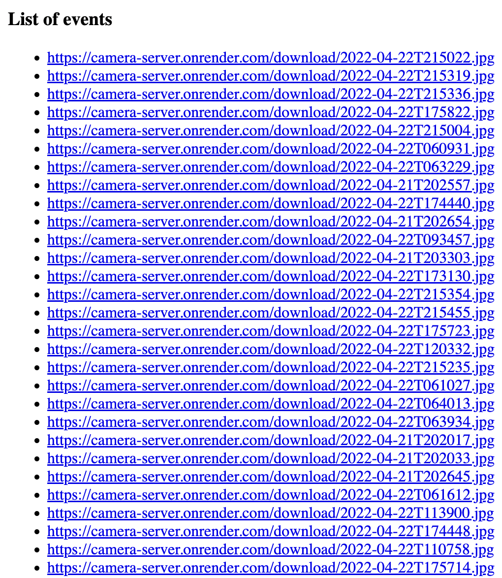 With such a simple server setup, the only thing we need to do for displaying the images in order is to query the filesystem and list the files by creation date. This logic is described in the list_files() function.